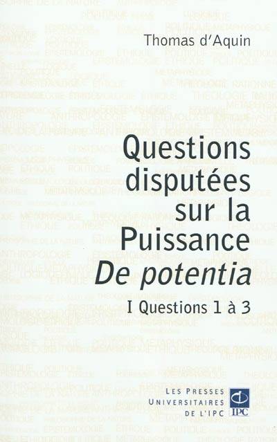 Le De Potentia de Thomas d'Aquin est, parmi les Questions disputées, une oeuvre importante qui n'avait pas été traduite en français. Elle traite des problèmes liés à la puissance de Dieu, qui se partage en puissance ad extra, (la création et ce qui en découle) et la puissance ad intra (la Trinité).