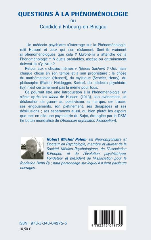 Un médecin psychiatre s'interroge sur la Phénoménologie, relit Husserl et ceux qui s'en réclament. Sont-ils vraiment si phénoménologues que cela ? Qu'ont-ils à attendre de la Phénoménologie ? À quels préalables, ascèse ou entraînement doivent-ils se livrer ?