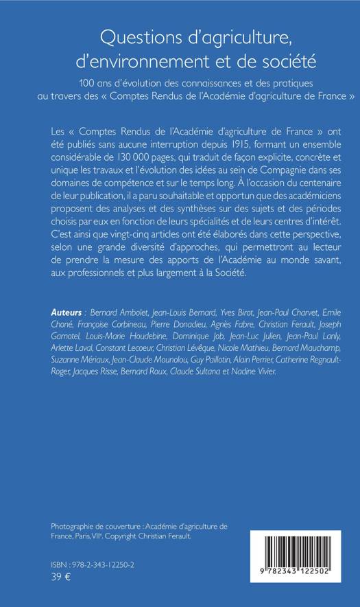 Les « comptes rendus de l'Académie d'agriculture de France » ont été publiés sans aucune interruption depuis 1915, formant un ensemble considérable de 130 000 pages, qui traduit de façon explicite, concrète et unique les travaux et l'évolution des idées au sein de Compagnie dans ses domaines de compétence et sur le temps long. À l'occasion du centenaire de leur publication, il a paru souhaitable et opportun que des académiciens proposent des analyses et des synthèses sur des sujets et des périodes diverses.