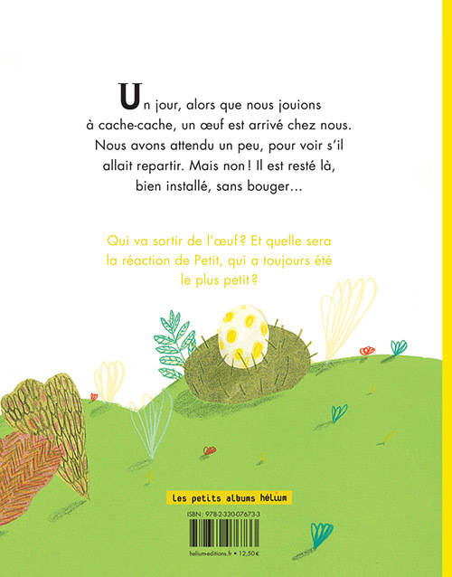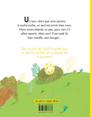 Un jour, alors que nous jouions à cache-cache, un oeuf est arrivé chez nous. Nous avons attendu un peu, pour voir s´il allait repartir. Mais non ! Il est resté là, bien installé, sans bouger... Qui va sortir de l'oeuf ? Et quelle sera la réaction de Petit, qui a toujours été le plus petit ?