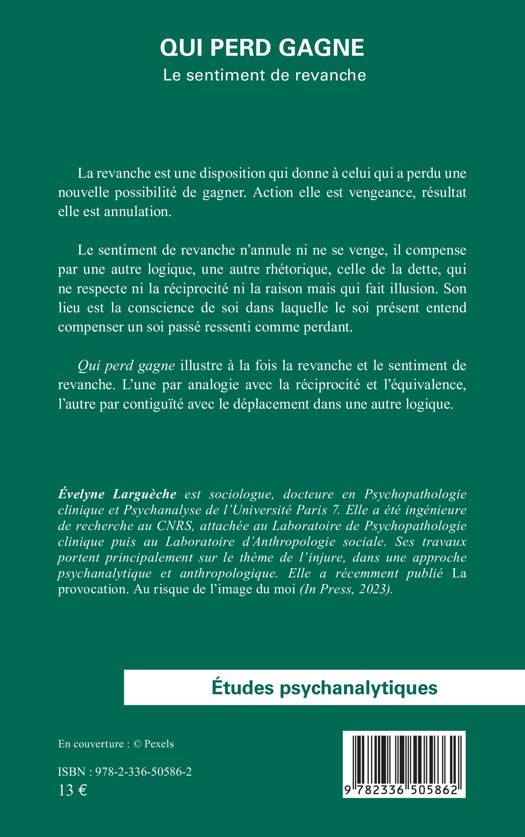 Qui perd gagne illustre à la fois la revanche et le sentiment de revanche. L'une par analogie avec la réciprocité et l'équivalence, l'autre par contiguïté avec le déplacement dans une autre logique.