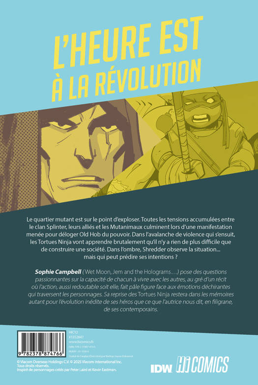 Avec la géniale Sophie Campbell (Wet Moon, Shadoweyes, Jem and the Holograms...) au scénario, l'univers des Tortues Ninja, qui compte plus de mutants que jamais, se trouve révolutionné ! Les dessinateurs Nelson Daniel et Jodi Nishijima mettent la main à la pâte pour reconstruire un monde connu, pourtant jamais-vu.