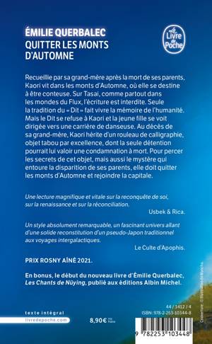 Recueillie par sa grand-mère après la mort de ses parents, Kaori vit dans les monts d’Automne où elle se destine à être conteuse. Sur Tasai, comme partout dans les mondes du Flux, l’écriture est interdite. Seule la tradition du « Dit » fait vivre la mémoire de l’humanité. Mais le Dit se refuse à Kaori et la jeune fille se voit dirigée vers une carrière de danseuse. Au décès de sa grand-mère, Kaori hérite d’un rouleau de calligraphie, objet tabou par excellence, dont la seule détention pourrait lui valoir une condamnation à mort. Pour percer les secrets de cet objet, mais aussi le mystère qui entoure la disparition de ses parents, elle devra quitter les monts d’Automne et rejoindre la capitale.