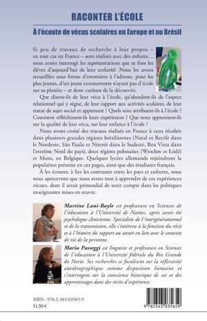 Que disent les enfants de leur vécu à l'école, qu'abordent-ils de l'aspect relationnel qui y règne, de leur rapport aux activités scolaires, de leur statut de sujet social et apprenant ? Quels sens attribuent-ils à l'école ? Comment réfléchissent-ils leurs expériences ? Les auteurs ont croisé des travaux réalisés en France à ceux récoltés dans plusieurs grandes régions brésiliennes, deux régions polonaises et Mons, en Belgique. Quelques lycées allemands rejoindront la population présente en ces pages, ainsi que des étudiants français.