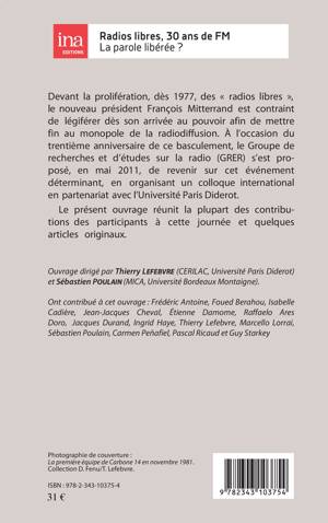 Devant la prolifération, dès 1977, des "radios libres", le nouveau président François Mitterrand est contraint de légiférer dès son arrivée au pouvoir afin de mettre fin au monopole de la radiodiffusion. A l'occasion du trentième anniversaire de ce basculement, le Groupe de recherches et d'études sur la radio (GRER) s'est proposé, en mai 2011, de revenir sur cet événement déterminant, en organisant un colloque international en partenariat avec l'Université Paris Diderot.