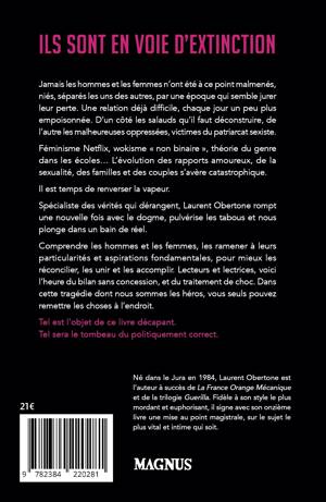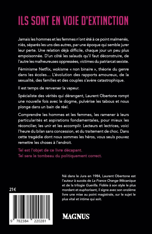 Né dans le Jura en 1984, Laurent Obertone est l’auteur à succès de La France Orange Mécanique et de la trilogie Guerilla. Fidèle à son style le plus mordant et euphorisant, il signe avec son onzième livre une mise au point magistrale, sur le sujet le plus vital et intime qui soit.