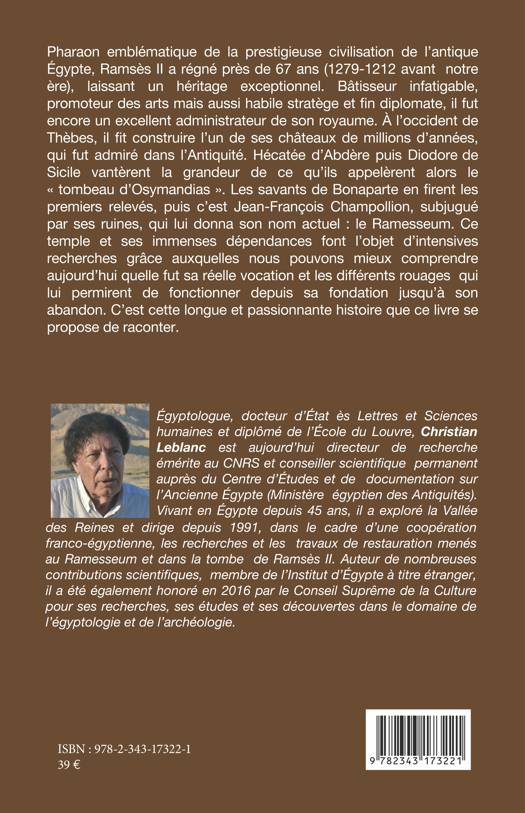Pharaon emblématique, Ramsès II a régné près de 67 ans, laissant un héritage exceptionnel. Bâtisseur infatigable, promoteur des arts mais aussi habile stratège et fin diplomate, il fut encore un excellent administrateur de son royaume. A l'occident des Thèbes, il fit construire l'un de ses châteaux qui fut admiré dans l'Antiquité. Ce temple et ses immenses dépendances dont l'objet d'intensives recherches grâces auxquelles nous pouvons mieux comprendre qu'elle fut sa réelle vocation . C'est cette longue et passionnante histoire que ce livre se propose de raconter.