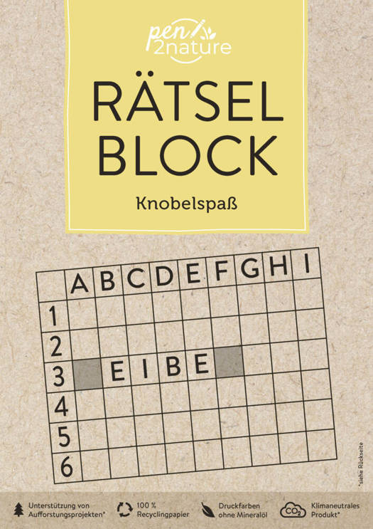 Alle Bücher und Blöcke wurden mit Farben auf Pflanzenöl-Basis und auf 100 % Recyclingpapier gedruckt. Der Verlag pen2nature unterstützt Klimaschutzprojekte und spendet 10 Cent pro Produkt für die Pflanzung neuer Bäume in heimischen Wäldern.