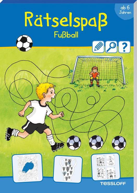 Bei den Fußballern ist einiges durcheinander geraten. Da ist Scharfsinn gefragt: Welcher Spieler bekommt die rote Karte? Hat der Torwart einen Doppelgänger? Und vor allem: Was hat der Hund auf dem Spielfeld zu suchen? Wege durchs Labyrinth finden, Puzzeln, Zuordnen, Vergleichen - ein vielfältiger Rätsel-Mix mit Lösungsteil auf der Rückseite.
