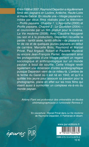 Entre 1998 et 2007, Raymond Depardon a régulièrement filmé des paysans en Lozère, Ardèche, Haute-Loire et Haute-Saône. En résulte une « trilogie paysanne » initiée par deux films réalisés pour la télévision – Profils paysans. Chapitre 1 : L’Approche (2000) et Profils paysans. Chapitre 2 : Le Quotidien (2004) – et couronnée par un film produit pour le cinéma, La Vie moderne (2008). Avec Claudine Nougaret (au son et à la production), Depardon recueille la parole – tantôt aisée, tantôt difficile – de paysans en fin de vie et de quelques jeunes paysans en début de carrière. Marcelle Brès, Raymond et Marcel Privat, Paul Argaud, Robert et Paulette Maneval ou encore Jean-François Pantel, deviennent ainsi les protagonistes d’une trilogie portant un regard sociologique et anthropologique sur un monde paysan à bout de souffle. Cette trilogie revêt également une dimension d’ordre autobiographique puisque Depardon vient de ce milieu-là. L’ombre de la ferme du Garet où il est né en 1942, et qu’il a quittée très jeune pour assouvir sa passion pour la photographie, plane en effet sur les trois films qui visent aussi à surmonter un complexe vis-à-vis du monde paysan.