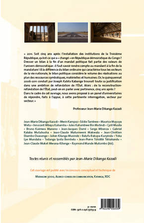 Dresser un bilan à la fin d'un mandat politique fait partie des valeurs de l'univers démocratique. Le bilan politique considère le volume des réalisations au plan des ressources symboliques, matérielles et humaines. Or, le quinquennat 2006-2011 conduit par Koseph Kabila Kabange trouvait toute sa justification dans une ambition de refondation de l'Etat : 5 ans après, peut-on parler avec pertinence de la reconstruction-refondation de l'Etat ?