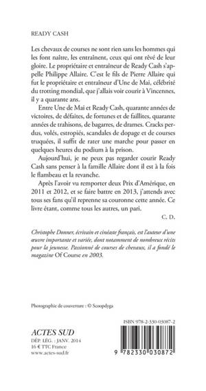 Les chevaux de courses ne sont rien sans les hommes qui les font naître, les entraînent, ceux qui ont rêvé de leur gloire. Le propriétaire et entraîneur de Ready Cash s'appelle Philippe Allaire. C'est le fils de Pierre Allaire qui fut le propriétaire et entraîneur d'Une de Mai, célébrité du trotting mondial, que j'allais voir courir à Vincennes, il y a quarante ans.