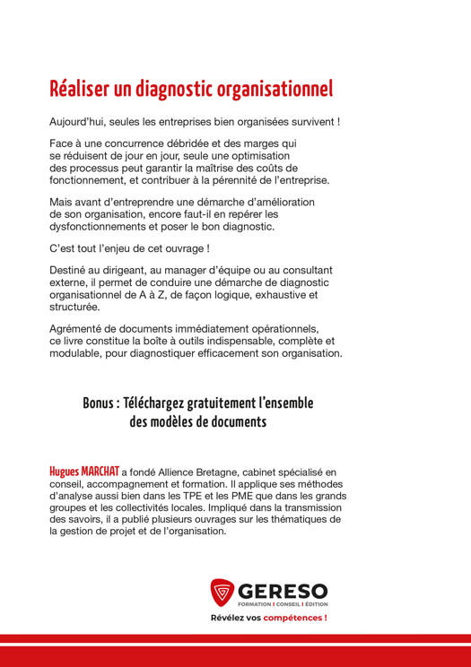 Destiné au dirigeant, au manager d’équipe ou au consultant externe, il permet de conduire une démarche de diagnostic organisationnel de A à Z, de façon logique, exhaustive et structurée.