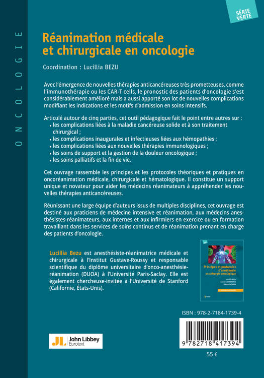 Réunissant une large équipe d’auteurs issus de multiples disciplines, cet ouvrage est destiné aux praticiens de médecine intensive et réanimation, aux médecins anesthésistes-réanimateurs, aux internes et aux infirmiers en exercice ou en formation travaillant dans les services de soins continus et de réanimation prenant en charge des patients d’oncologie.