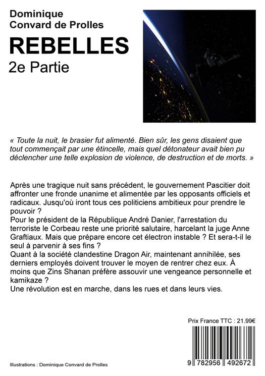 Après une nuit tragique sans précédent, le gouvernement Pascitier doit affronter une fronde unanime et alimentée par les opposants officiels ou radicaux. Jusqu'où iront tous ces politiciens ambitieux pour prendre le pouvoir ? Pour le président de la République André Danier, l'arrestation du terroriste le Corbeau reste une priorité absolue, harcelant la juge Anne Graftiaux. Mais que prépare encore cet électron instable ? Et sera-t-il le seul à parvenir à ses fins ? Quant à la société clandestine Dragon Air, maintenant annihilée, ses derniers employés doivent trouver le moyen de rentrer chez eux. À moins que Zins Shanan préfère assouvir une vengeance personnelle et kamikaze ? Une révolution est en marche, dans les rues et dans leurs vies.