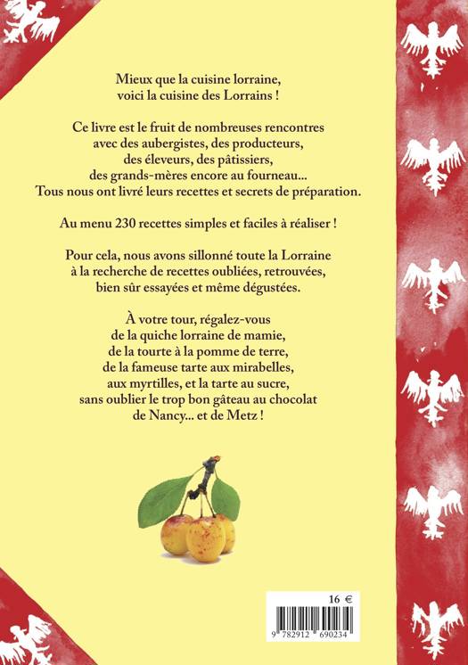 Au menu 230 recettes simples et faciles à réaliser ! Pour cela, nous avons sillonné toute la Lorraine à la recherche de recettes oubliées, retrouvées, bien sûr essayées et même dégustées.