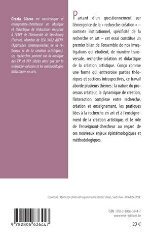Conçu comme une forme qui entrecroise parties théoriques et sections introspectives, cet essai aborde plusieurs thèmes : la nature du processus créateur, la dynamique de création, l'interaction complexe entre recherche, création et enseignement, les pratiques liées à la recherche en art et à l'enseignement de la création artistique, le rôle de l'enseignant-chercheur au regard de ces nouveaux enjeux épistémologiques et méthodologiques.