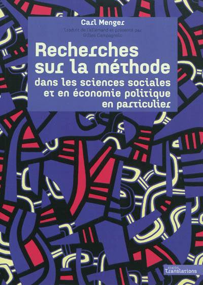 Gilles Campagnolo traduit de l'allemand et présente cet ouvrage de référence. Il retrace les circonstances de sa publication, introduit les concepts employés par le Viennois, notamment sa classification des sciences économiques. Une partie documentaire évalue et discute les arguments de la querelle avec Schmoller ; en fin de volume, un glossaire facilite l'accès à la terminologie mengérienne.