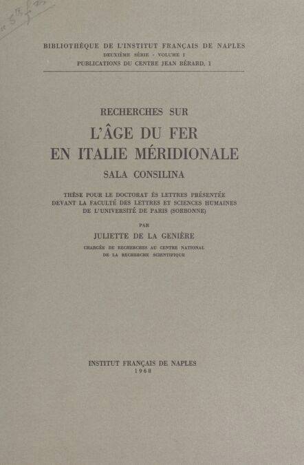 Recherches sur l'âge du fer en Italie méridionale, Sala Consilina EBOOK