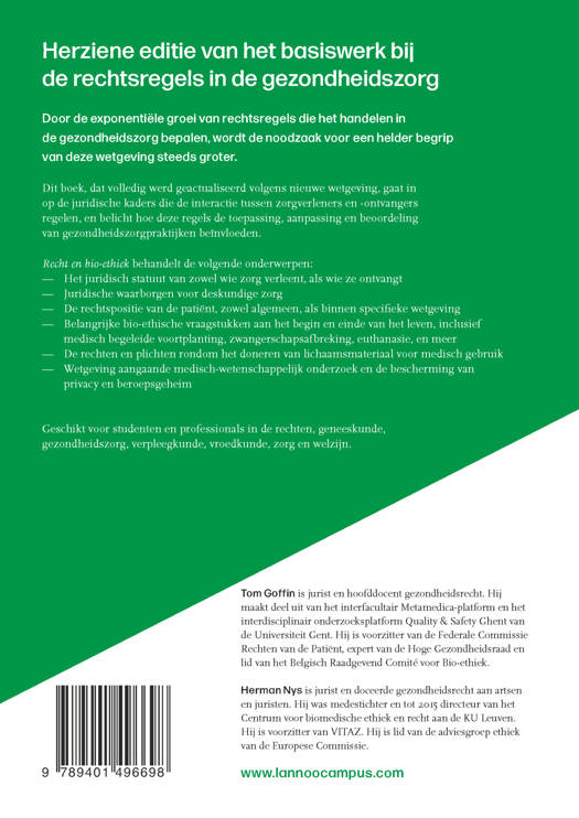 Door de exponentiële groei van rechtsregels die het handelen in de gezondheidszorg bepalen, wordt de noodzaak voor een helder begrip van deze wetgeving steeds groter. Dit boek, dat volledig werd geactualiseerd volgens nieuwe wetgeving, gaat in op de juridische kaders die de interactie tussen zorgverleners en -ontvangers regelen, en belicht hoe deze regels de toepassing, aanpassing en beoordeling van gezondheidszorgpraktijken beïnvloeden. Recht en bio-ethiek behandelt de volgende onderwerpen: