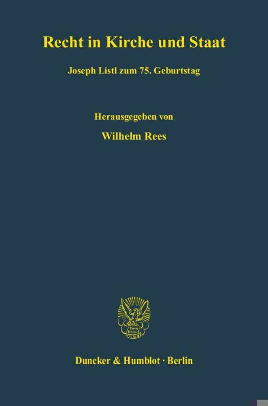 Der Titel, unter dem diese Festschrift Joseph Listl zur Vollendung seines fünfundsiebzigsten Lebensjahres am 21. Oktober 2004 gewidmet ist, bringt die beiden Bereiche zum Ausdruck, denen er sein Leben und seine ganze Schaffenskraft gewidmet hat.