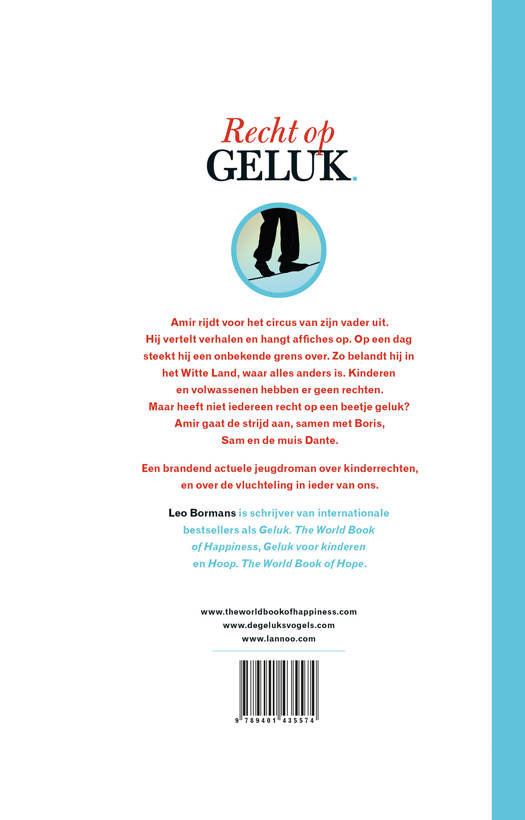 Amir rijdt voor het circus van zijn vader uit. Hij vertelt verhalen en hangt affiches op. Op een dag steekt hij een onbekende grens over. Zo belandt hij in het Witte Land, waar alles anders is. Kinderen en volwassenen hebben er geen rechten. Maar heeft niet iedereen recht op een beetje geluk? Amir gaat de strijd aan, samen met Boris, Sam en de muis Dante. Een brandend actuele jeugdroman over kinderrechten, en over de vluchteling in ieder van ons.