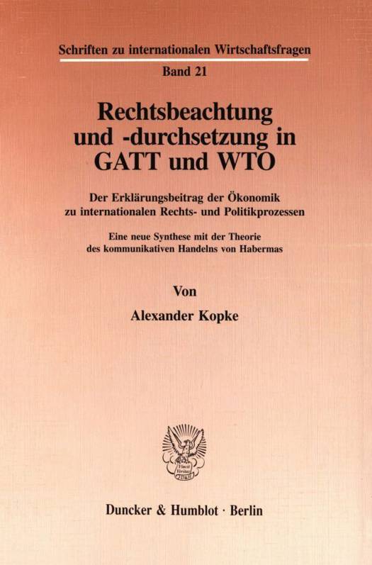 Dagegen ermöglicht der sozialwissenschaftlich umfassendere Ansatz der Theorie des kommunikativen Handelns von Habermas überzeugende Antworten auf die Frage nach Rechtsbeachtung und -durchsetzung in den internationalen Handelsbeziehungen. Ein kommunikationstheoretischer Forschungsansatz ermöglicht Aussagen zur zukünftigen Rechtsbeachtung und -durchsetzung in der WTO. Dies wird in dieser Arbeit exemplarisch am Thema internationaler Umweltschutz im neuen WTO-Streitschlichtungsverfahren aufgezeigt.
