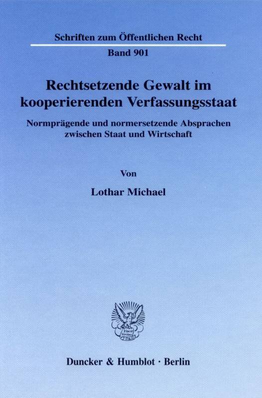 Informelle Kooperationen des Staates mit der Wirtschaft drohen den Geltungsanspruch des Rechts zu unterlaufen. Lothar Michael stellt dem in seiner Untersuchung die These entgegen, dass auch ein Staat, der mit der Wirtschaft informal kooperiert, ein Verfassungsstaat bleiben kann. In einer Bestandsaufnahme belegt er Selbstverpflichtungen, normprägende und normersetzende Absprachen mit einer Fülle von Beispielen auf nationaler und europäischer Ebene und typisiert sie unter rechtlichen Gesichtspunkten. Dabei überträgt er Grundkategorien des Verfassungsrechts, deren Dogmatik auf formales einseitiges Handeln zugeschnitten ist, auf normative Absprachen.