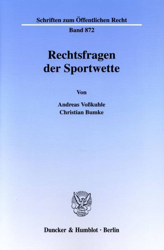 Die Autoren gehen in der vorliegenden Studie dieser Frage am Beispiel der Sportwette nach, die in Form der Oddset-Wette neuerdings neben der herkömmlichen Fußball-Elferwette (sog. Fußball-Toto) mit viel Erfolg von den in staatlicher Hand befindlichen Toto-Lotto-Gesellschaften der deutschen Bundesländer veranstaltet wird. Dabei wird eine ganze Reihe von Problemkreisen untersucht, die allesamt die Grundstrukturen des deutschen Glücksspielrechts als klassische Querschnittmaterie betreffen. Entgegen der neueren Rechtsprechung des Bundesverwaltungsgerichts kommen Andreas Voßkuhle und Christian Bumke zu dem Ergebnis, daß die geltende Rechtslage verfassungs- und gemeinschaftsrechtswidrig ist und bis zur gesetzlichen Neuregelung private Veranstalter von Sportwetten unter bestimmten Voraussetzungen einen Anspruch auf Erteilung einer entsprechenden Erlaubnis haben.