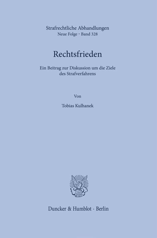 English summary: Legal Peace. A Contribution to the Discussion on the Goals of Criminal Proceedings Legal peace is characterised by diversity in its form and variety in the influences that shape it. In three reference systems, it describes a certain normative automatism with established legal stability (peace in law), a state responsibility including the obligation to enforce the law, if necessary even against the will of the individual (peace through law) and the needful involvement of the population (peace with the law). German description: Rechtsfrieden ist der Frieden, der durch das Recht gesetzt und mit dem Recht verteidigt wird. Jede Straftat stellt demgegenuber eine unterschiedlich gravierende Storung dieses Zustands dar: Das strafrechtliche Delikt ist seinem Wesen nach die schuldhafte Verletzung eines fur alle gewahrleisteten Rechtsgutes, es erscheint als eine Storung des allgemeinen Rechtsfriedens (BVerfGE 21, 391). Der in Gang gesetzte Prozess beschreibt sodann in wohltemperierter Stimmung von Strafverfolgungseffektivitat und wirkungsvollen Verteidigungsrechten die bestmogliche Wiederherstellung des idealen Urzustands - eines Friedens im Recht und einer Zufriedenheit mit dem Recht und seiner Zuordnung - mit den Mitteln des Strafrechts. Hierbei weist der Rechtsfrieden neben einer rationalen Erwartungshaltung ebenso eine dezidiert reale Bewertung auf. Diese Betrachtung umfasst die Verbindung von Legalitat und Opportunitat, konsensuale Momente, Zwecksetzungen der Strafzumessung und die Einflusse offentlicher wie medialer Anteilnahme.