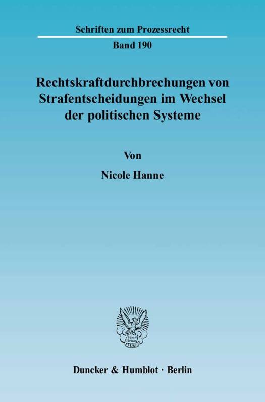 Rechtskraftdurchbrechungen Von Strafentscheidungen Im Wechsel Der Politischen Systeme