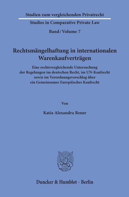 Die Rechtsmangelhaftung wird in Untersuchungen zum Recht der Leistungsstorungen beim Sachkauf meist nur am Rande behandelt. Dieser Thematik fur den Bereich der internationalen Warenkaufvertrage zwischen Unternehmen unter Einbeziehung neuester Entwicklungen ist die vorliegende Arbeit gewidmet. Die relevanten Regelungen im BGB, im UN-Kaufrecht (CISG) und im Verordnungsvorschlag fur ein Gemeinsames Europaisches Kaufrecht (CESL) werden einer kritischen Analyse unterworfen, wobei auch die Rechte des geistigen Eigentums Beachtung finden. Nach einleitenden Anmerkungen zu Aufbau und Systematik wird der Inhalt der Rechtsmangelhaftung in den drei Regelwerken untersucht und die verschiedenen Fallgruppen voneinander abgegrenzt. Auf die Besprechung der diversen Kategorien des Haftungsausschlusses sowie der Haftungsbeschrankung folgt abschlieaend eine Behandlung der Rechtsfolgen. Dabei liegt der Fokus auf einer vergleichenden Analyse der relevanten Rechtsprechung.