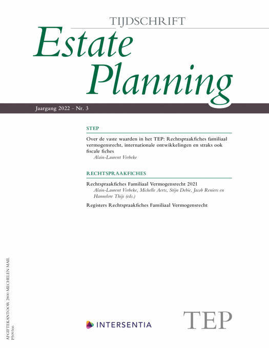 In dit derde nummer van de jaargang 2022 van het Tijdschrift Estate Planning komen de rechtspraakfiches familiaal vermogensrecht aan bod. Het betreft de belangrijkste in het jaar 2021 gepubliceerde rechtspraak van de hoven van beroep, het Hof van Cassatie en het Grondwettelijk Hof in de drie grote leerstukken van het familiaal vermogensrecht: het huwelijks- en relatievermogensrecht, het erfrecht en de gift en. Dit is een feesteditie: het zijn de tiende rechtspraakfiches.