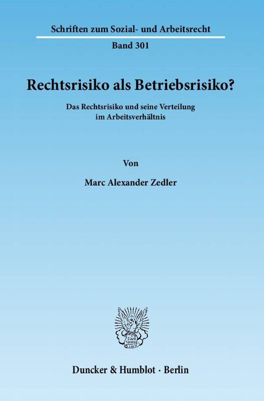 Marc Zedler beschäftigt sich mit Ungewissheiten der Rechtsanwendung. Er definiert Rechtsrisiko als fehlende Vorhersagbarkeit der rechtlichen Beurteilung eines vorliegenden Sachverhalts durch ein Gericht und untersucht Faktoren, die dieses Risiko erhöhen. Hierzu werden Normfindungs-, Normauslegungs- und Normanwendungsrisiken unterschieden. Im Anschluss diskutiert der Autor die Bestimmbarkeit der Verteilung des Rechtsrisikos. Er legt dar, dass unter einer paritätischen Risikoverteilung jeder Handelnde das sich aus seiner Rechtsauffassung ergebende Rechtsrisiko trägt.