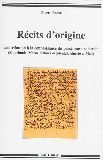En s'inspirant de l'analyse structurale des mythes, Pierre Bonté propose une méthode de traitement des « récits d'origine » ouest-sahariens dont le statut est resté imprécis dans le champ de la littérature orale (légendes, mythes, épopées, saga). Ces récits d'origine ont trait aux fondations, celles des tribus dans des sociétés organisées sur un mode tribal, celles des villes anciennes, mais ils se rapportent également aux grands mouvements religieux et à l'introduction des « confréries » dans l'ouest du Sahara (Mauritanie, Maroc, Sahara occidental, Algérie et Mali).
