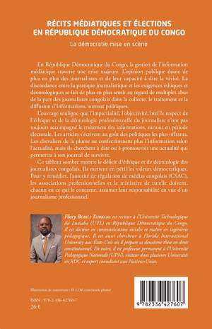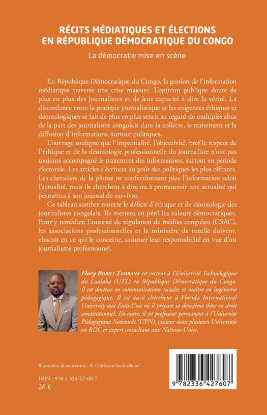 En République Démocratique du Congo, la gestion de l'information médiatique traverse une crise majeure. L'opinion publique doute de plus en plus des journalistes et de leur capacité à dire la vérité. La discordance entre la pratique journalistique et les exigences éthiques et déontologiques se fait de plus en plus sentir au regard de multiples abus de la part des journalistes congolais dans la collecte, le traitement et la diffusion d'informations, surtout politiques. L'ouvrage souligne que l'impartialité, l'objectivité, bref le respect de l'éthique et de la déontologie professionnelle du journaliste n'ont pas toujours accompagné le traitement des informations, surtout en période électorale. Les articles s'écrivent au goût des politiques les plus offrants. Les chevaliers de la plume ne confectionnent plus l'information selon l'actualité, mais ils cherchent à dire ou à promouvoir une actualité qui permettra à son journal de survivre. Ce tableau sombre montre le déficit d'éthique et de déontologie des journalistes congolais. Ils mettent en péril les valeurs démocratiques. Pour y remédier, l'autorité de régulation de médias congolais (CSAC), les associations professionnelles et le ministère de tutelle doivent, chacun en ce qui le concerne, assumer leur responsabilité en vue d'un journalisme professionnel.