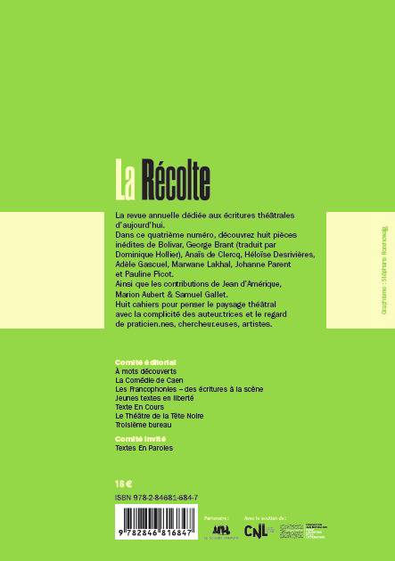 Dans ce quatrième numéro, découvrez huit pièces inédites de Bolivar, George Brant (traduite par Dominique Hollier), Anaïs de Clercq, Héloïse Desrivières, Adèle Gascuel, Marwane Lakhal, Johanne Parent et Pauline Picot.