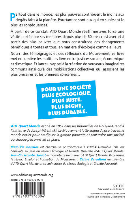 Nourri des témoignages et des réflexions du Mouvement, ce livre met en lumière les multiples liens entre justice sociale, économique et climatique. Et lance un appel à la création de nouveaux imaginaires communs ainsi qu’à des mobilisations collectives qui associent les plus précaires et les premiers concernés... pour une société plus écologique, plus juste, plus digne, plus durable.