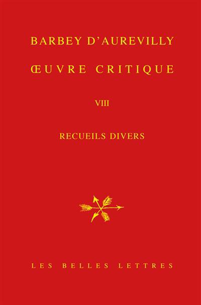 Tout au long de sa carriere litteraire, Barbey d'Aurevilly fut un collaborateur assidu de la presse de son temps et un critique redoute. Au Nouvelliste, au Pays, au Reveil, au Constitutionnel, a Triboulet, il fut l'observateur attentif de l'actualite editoriale, des nouvelles productions dramatiques et, plus generalement, de la vie sociale, politique et intellectuelle. Cet aspect de son activite litteraire lui importa assez pour qu'il eprouve le desir de recueillir en volumes un grand nombre de ses etudes critiques. Interrompue en 1889 par sa disparition, cette entreprise editoriale fut poursuivie par son amie Louise Read qui porta a pres de quarante le nombre des recueils edites, formant ainsi un vaste ensemble du plus grand interet pour tous ceux qui s'interessent a la litterature du XIXe siecle et a l'histoire des idees. Depuis leur edition originale, les titres concernes n'avaient, pour la plupart, jamais ete reedites. Les vingt-six volumes du vaste ensemble forme par Les OEuvres et les Hommes avaient certes ete reimprimes en 1968 par Slatkine Reprints d'apres le texte de l'edition originale. Mais, avant que ne soit commencee l'entreprise editoriale dont voici la huitieme et avant-derniere livraison, on ne disposait pas d'une edition savante integrale des textes critiques de Barbey, incluant les cinq livraisons du Theatre contemporain, les titres non recueillis dans Les OEuvres et les Hommes - Du dandysme et de George Brummell, Les Prophetes du passe, Victor Hugo, Les Quarante medaillons de l'Academie, Goethe et Diderot, Les Ridicules du temps, Les Vieilles Actrices, Le Musee des Antiques, Polemiques d'hier, Dernieres polemiques - et les articles donnes dans la presse, mais jamais repris en recueil.