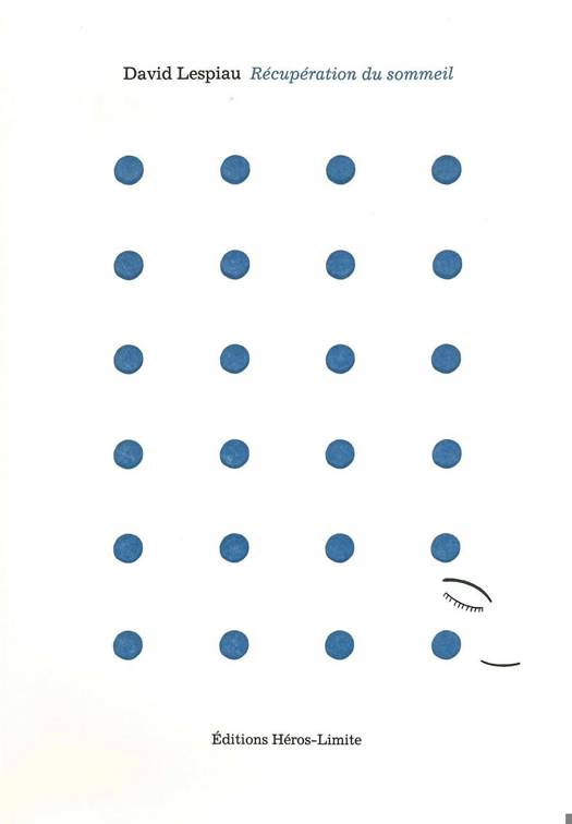 Récupération du sommeilest un livre de poésie, en vers, qui mêle des motifs volontairement prosaïques : notes d’observation, micro-narrations, micro-fictions, figures de la culture populaire, bribes de journal… – le tout déplacé et remonté par la travail d’écriture. Ce travail se rapproche de celui de la pensée quand elle expérimente librement de nouvelles connexions, de nouveaux gestes, mouvements… ; dans le travail du rêve, notamment, mais aussi dans le travail de la pensée saturée – saturation qui viendrait de la fatigue mentale, d’un contexte extrêmement dense, et également de tout ce que le corps – sexué et mortel – envoie comme informations multiples, en surimpression. Dès lors, chaque vers – vu ici comme formalisation textuelle de moments mentaux – devient presque une tentative de mouvement fin, parfois étrange, pour s’en sortir…