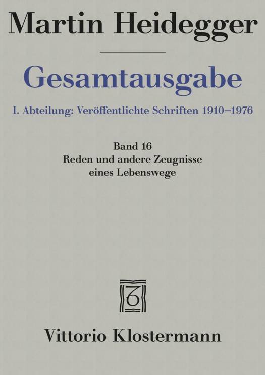 Der Band 16 der Martin Heidegger Gesamtausgabe vereinigt gemäß einer Festlegung Heideggers fast alle von ihm gehaltenen Reden und Ansprachen sowie andere Zeugnisse aus 66jähriger Arbeitszeit: Ankündigungen, Aufrufe, Aufsätze, amtliche Äußerungen, einige Briefe, Buchbesprechungen, Gedenkworte, einige Gedichte und Gespräche, Gratulationen, Gruß- und Dankworte, Lebensläufe, Stellungnahmen und Würdigungen. Dazu kommen bisher unveröffentlichte Äußerungen, besonders aus seiner Rektoratszeit, die dazubeitragen können, Heideggers Persönlichkeit und seinen politischen Irrtum von 1933 besser zu verstehen.Hauptsächliche Unterlagen dieses Bandes sind die da und dort mit Verbesserungen versehenen Handexemplare der von Martin Heidegger selbst zum Druck gebrachten Einzelveröffentlichungen, in wenigen Fällen die vom Herausgeber durchgesehenen Neuauflagen. In seinem Nachwort gibt Hermann Heidegger einen kurzen Überblick über die bisherige Geschichte der Gesamtausgabe und berichtet aus der Sicht des Historikers und Zeitzeugen knapp über einiges, was bisherige Biographieversuche außer acht gelassen haben.
