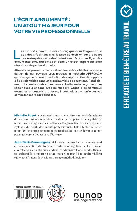 Afin de vous permettre d’en maîtriser toutes les subtilités, la sixième édition de cet ouvrage vous propose la méthode APPROACH qui vous guidera dans la rédaction des sept familles de rapports clés, exploitables dans un grand nombre de situations. Parallèlement, l’accent est mis sur les plans et la dimension argumentaire spécifiques à chaque type de rapport.