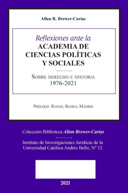 Este libro del profesor Allan R. Brewer-Carías, es una compilación de sus discursos y conferencias ante la Academia de Ciencias Políticas y Sociales de Venezuela y al recibir el doctorado honoris causa o premios de Universidades, sobre el derecho e historia, que he dictado durante los últimos cuarenta años desde 1976, en los cuales se he referido a: 1. La Régimen Legal de las Aguas en Venezuela; 2. El Urbanismo y la Propiedad privada; 3. El trabajo académico y el agradecimiento a la amistad; 4. La Formación del Abogado y los problemas del ejercicio de la abogacía; 5. El sistema económico en la Constitución venezolana: Libertad Económica e intervención del Estado; 6. El Arbitraje y los contratos de interés público; 7. La ley de promoción y protección de inversiones, los contratos públicos y la jurisdicción; 8.Juez constitucional y las Academias; 9. Balance y Perspectivas de los treinta años del control judicial de los Poderes Públicos en Venezuela; 10 La relación de Eduardo García de Enterría con la Academia venezolana, 11. La pandemia y el Estado de Alarma: el Estado de derecho no está en cuarentena; 12. La progresiva aceptación del arbitraje en el derecho público, 13. Los próceres civiles en la transición hacia la independencia y la justificación de sus causas; y 14. La Formación de la República y de su territorio en las Constituciones de Venezuela del siglo XIX. Un legado del proceso constitucional que comenzó con la ley Fundamental de la República de Colombia promulgada por Simón Bolívar, en Angostura, el 17 de diciembre de 1819.