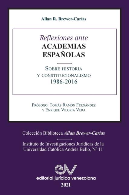 Este libro es una compilación de los discursos y conferencia sobre historia, derecho y constitucionalismo dados por el profesor Allan R. Brewer-Carías ante diversas Academias españolas o al recibir títulos académicos, durante las últimas décadas y, específicamente, ante la Academia de la Historia y Arte de San Quirce de Segovia, sobre "Historia, Derecho Público y Urbanismo" (1986); en la Universidad de Granada al recibir el Doctorado Honoris Causa de la misma sobre e "España y el Constitucionalismo Iberoamericano" (1986); en la Universidad carlos III de Madrid al recibir el Doctorado Honoris Causa de la misma sobre "Carlos III y la organización territorial del poblamiento en América" (1996); ante la Real Academia Valenciana de Jurisprudencia y Legislación, sobre "Las contradicciones del Federalismo venezolano"(2000); ante la Real Academia de Legislación y Jurisprudencia de Madrid, sobre "La Ciudad Ordenada" (2008), ante el Consejo de Estado, sobre "La protección de los derechos frente al poder de la Administración y el profesor Eduardo García de Enterría" (2014); ante la Real Academia de Jurisprudencia y Legislación de Madrid, sobre "La Constitución como promesa incumplida: El Caso de Venezuela" (2016); y ante la Real Academia Hispano Americana de Ciencias, Artes y Letras de Cádiz, sobre "Francisco de Miranda y el fin de sus días en Cádiz, por causa de "la perfidia de uno y la infamia de otros" (2016).