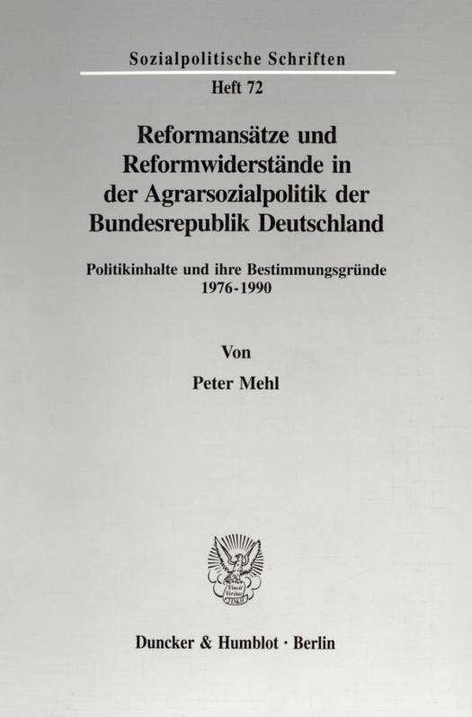 Wie die allgemeinen sozialen Sicherungssysteme, so war auch das Sondersystem der landwirtschaftlichen Sozialversicherung seit Mitte der siebziger Jahre Gegenstand intensiver Reformdiskussionen. Im Vergleich zu den allgemeinen sozialen Sicherungssystemen zeigte das System der landwirtschaftlichen Sozialversicherung jedoch eine bemerkenswerte Reformresistenz. Die vorliegende empirische Analyse der Agrarsozialpolitik von 1976 bis 1990 untersucht deren Gründe.