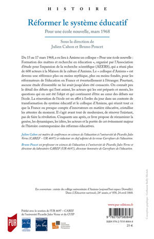 On connaît peu le détail des débats qui ont animé le colloque d'Amiens «Pour une école nouvelle : Formation des maîtres et recherche en éducation», organisé par l'Association d'étude pour l'expansion de la recherche scientifique (AEERS) du 15 au 17 mars 1968. On connaît peu les acteurs qui les ont préparés et menés, les questions qui en ont été l'objet et qui continuent d'être au coeur des débats sur l'école. Cinquante ans après, ce livre propose de réexaminer la genèse, les dynamiques, les idées, les acteurs et la portée de cet évènement majeur de l'histoire contemporaine des réformes éducatives.