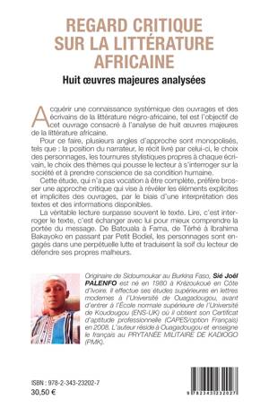Acquérir une connaissance systémique des ouvrages et des écrivains de la littérature négro-africaine, tel est l'objectif de cet ouvrage consacré à l'analyse de huit oeuvres majeures de la littérature africaine. Pour ce faire, plusieurs angles d'approche sont monopolisés: la position du narrateur, le récit livré par celui-ci, le choix des personnages, les tournures stylistiques propres à chaque écri vain, le choix des thèmes qui pousse le lecteur à s'interroger sur la société et à prendre conscience de sa condition humaine. De Batouala à Fama, de Térhé à Ibrahima Bakayoko en passant par Petit Bodiel, les personnages sont engagés dans une perpétuelle lutte et traduisent la soif du lecteur de défendre ses propres malheurs.