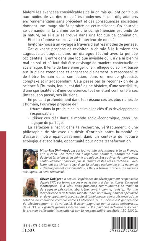 Cet ouvrage s'adresse aux citoyens, à tous niveaux : aux scientifiques, qui peuvent avoir envie de découvrir un autre regard sur la chimie grâce aux philosophies occidentales et asiatiques ; aux chercheurs en sciences humaines qui étudient la chimie ; à tout acteur de l'industrie chimique, et finalement à tous citoyen qui se pose des questions sur le monde, dont les paysages dépendent de la manière dont nous développons la science, et en particlier la chimie, au coeur des questionnements actuels.