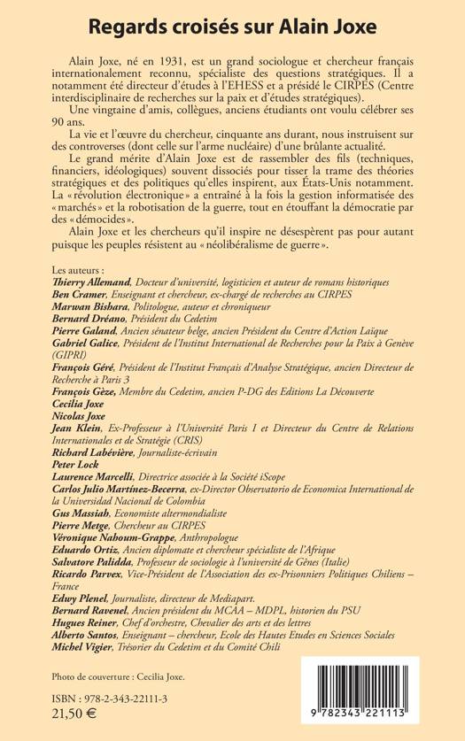Alain Joxe, né en 1931, est un grand sociologue et chercheur français internationalement reconnu, spécialiste des questions stratégiques. Il a notamment été directeur d'études à l'EHESS et a présidé le CIRPES (Centre interdisciplinaire de recherches sur la paix et d'études stratégiques). Une vingtaine d'amis, collègues, anciens étudiants ont voulu célébrer ses 90 ans. La vie et l'uvre du chercheur, cinquante ans durant, nous instruisent sur des controverses (dont celle sur l'arme nucléaire) d'une brûlante actualité. Le grand mérite d'Alain Joxe est de rassembler des fils (techniques, financiers, idéologiques) souvent dissociés pour tisser la trame des théories stratégiques et des politiques qu'elles inspirent, aux États-Unis notamment.