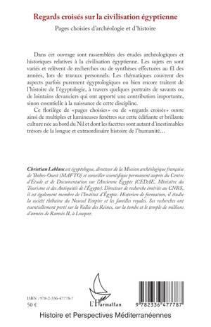 Dans cet ouvrage sont rassemblées des études archéologiques et historiques relatives à la civilisation égyptienne. Les sujets en sont variés et relèvent de recherches ou de synthèses effectuées au fil des années, lors de travaux personnels. Les thématiques couvrent des aspects parfois purement égyptologiques ou bien encore traitent de l'histoire de l'égyptologie, à travers quelques portraits de savants ou de lointains devanciers qui ont apporté une contribution importante, sinon essentielle à la naissance de cette discipline. Ce florilège de pages choisies ou de regards croisés ouvre ainsi de multiples et lumineuses fenêtres sur cette édifiante et brillante culture née au bord du Nil et dont les facettes sont autant d'inestimables trésors de la longue et extraordinaire histoire de l'humanité...